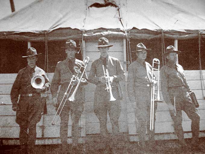 Bradley served in Oregon National Guard at Fort Stevens before WWII. He is on the left. His oldest brother Johnathan is second from the right.