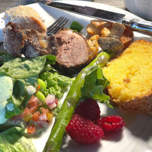 The ambience was one of excitement and anticipation. The restaurant officially opened on February 9th in the Bridgeport Village mall, which straddles the border of Tigard and Tualatin, and the vibrant, new energy of the space was palpable. I ordered a crisp cup of coffee first, and it paired fantastically with the pão de queijo (Brazilian cheese bread) that we were served upon being seated. Then, it was time to make our way to the Market Table, a traditional buffet inspired by the markets of Brazil. At the Market Table, you’ll find a beautiful rainbow of fruits and vegetables (kiwis, pineapples, dragon fruit, asparagus), along with a traditional feijoada bar. Feijoada, a Brazilian speciality, is a black bean stew with sausage, served with rice and a fresh orange. At weekend brunch, Fogo also offers one of my favorite surprises of the menu: bolo de fubá (sweet cornmeal cake) with whipped banana crème. The Market Table is offered both as a meal on its own, or as a pairing with the churrasco experience. At brunch, you also have the option of waffles and omelettes made to order. As much as I was tempted to try the latter, I chose to save room for steak.