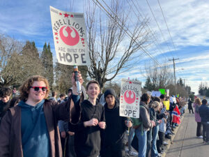 “We thought this would be a really cool opportunity for our school,” Tualatin High School Junior Madeline Rowe told Tualatin Life. “A lot of people at our school don’t have a chance to go protest because they’re either scared or their parents don’t want them to.”