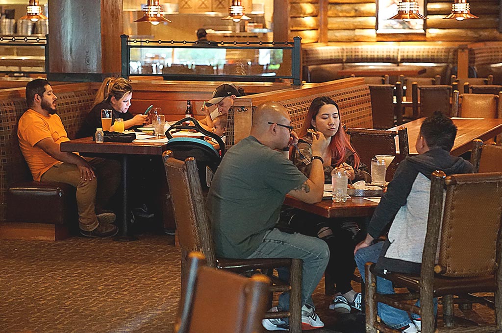 Restaurants, bars, breweries, brewpubs, wineries, tasting rooms and distilleries can all open for business as long as they are able to meet distancing requirements of 6 feet between tables and allow no more than 10 people in a party. Employees must wear face coverings, and on-site service must end by 10 p.m. Video poker, as long as distancing is enforced, is allowed.