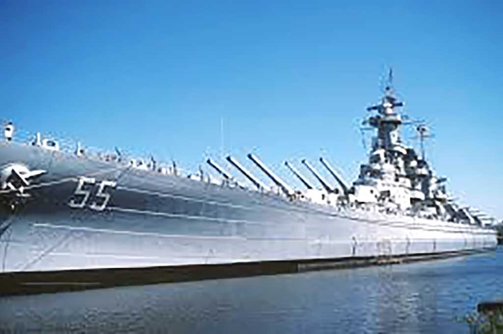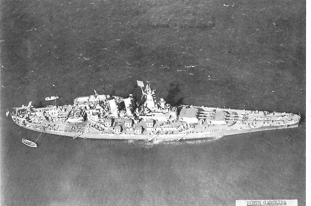 Earlier, in the Battle of the Eastern Solomon’s in August 1942, North Carolina’s anti-aircraft barrage helped save the carrier USS Enterprise, establishing the role of fast battleships as protectors of aircraft carriers. In all, North Carolina steamed over 300,000 miles, carried out nine shore bombardments, sank an enemy troopship, destroyed at least 24 enemy aircraft, and assisted in shooting down many more. Japanese radio announcements claimed six times that she had been sunk. .By war’s end, she had lost only ten men in action and had 67 wounded. Now it is a museum ship and Memorial docked at the seaport of Wilmington, North Carolina.