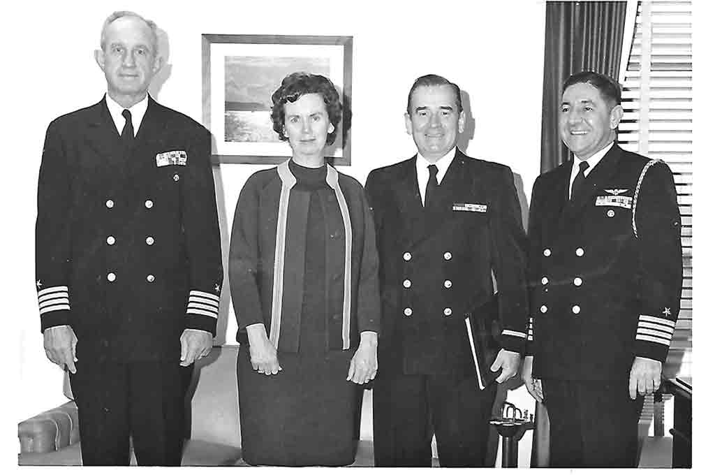 In 1946, John was sent to a bureaucratic office: the Coal Mine Administration in Chicago. President Harry Truman had ordered a federal takeover of coal mines after a devastating national strike by miners. McGuigan’s assignment seemed dull to him, setting up a filing system, but it was important organizationally. The high point was meeting his wife, Blanche, a Navy WAVES (Women Accepted for Volunteer Emergency Service) doing secretarial duties. They married on May 23, 1947. ““I give her so much credit,” John said. “I think about all the time I was away at sea, while she was raising a great family of five children.” John’s Navy duties put him in contact with three great Americans. He worked directly for Admiral Chester Nimitz, Pacific Fleet Commander in Hawaii. The Admiral had to walk through John’s office to get to his own office. John said the Admiral practiced pistol shooting every afternoon, In 1951, John was at the Pentagon where he was assigned to escort General Eisenhower. Ike took a liking to him and arranged for him to join Ike at as his job in Paris as the first head of NATO. However, by the time John was reassigned, Ike was running for President. So John headed up the US Navy contingency working under General Omar Bradley.