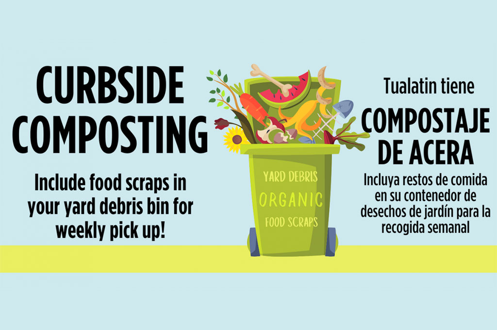 Since Tualatin offers weekly residential garbage, recycling, and yard debris service, congrats, you already have curbside composting! Your yard debris roll cart is designed for food scraps and yard debris. Unfortunately, apartments and other multifamily households are not eligible at this time, but we hope to be able to offer this service in the future.