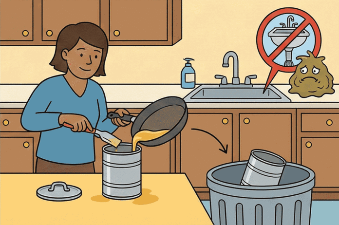 FOGs can be both a liquid (when hot) and a solid (when cool). When they’re first rinsed down the drain, they’ll coat the inside of your pipes, then solidify layer by layer as they cool. Those fatty layers act like a sticky net that trap other things that end up down the drain. Eventually, the buildup narrows the pipe’s diameter, initially causing a slow drain and eventually a complete clog. This can cause major blockages or overflows in home plumbing, septic tanks, and the City’s sewer system. It’s smelly, unpleasant, unhealthy, and totally avoidable.