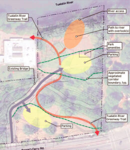 The park, which is currently unnamed, is slated to span six acres of riverside across from the Tualatin Public Library on Boones Ferry Road and plans to provide the public with increased riverfront access and a new centralized gathering place.