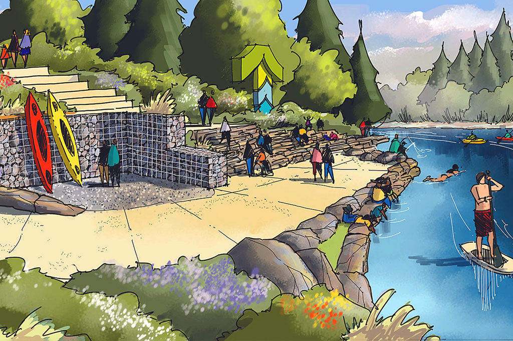 Graphics posted on the city website illustrate recreationalists using the park to fish, paddle board, kayak and canoe, but with the design stage still distant, the exact layout of the park is subject to reshaping.