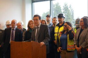 Lawmakers, construction industry representatives and leadership from TriMet, Portland’s public transit agency, celebrated the governors’ commitment to the project.