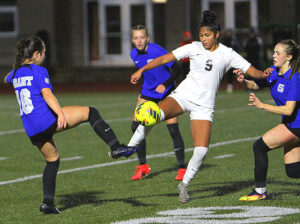 “She’s a sophomore keeper who is just one of the best keepers I’ve seen,” he said. “She times everything perfectly, her dives, her jumps. She’s very commanding to the defense in front of her, lets them know what to do and where to go.”