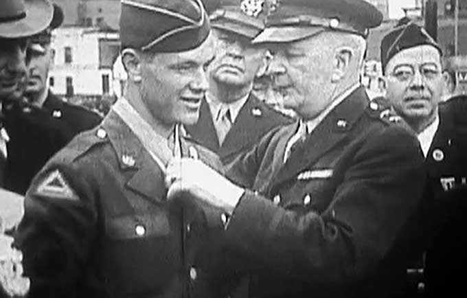 Technician Fifth Grade Robert D. Maxwell receives the Medal of Honor from General Danielson. Photo courtesy of Dick Tobiason.