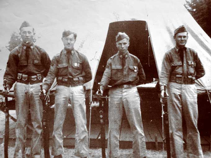 Bradley served in Oregon National Guard at Fort Stevens before WWII. He is on the left. His oldest brother Johnathan is second from the right.