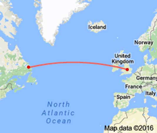 Atlantic flight path. History books say Summers’ plane is the only aircraft in 384th bomb group that did not make it to England.
