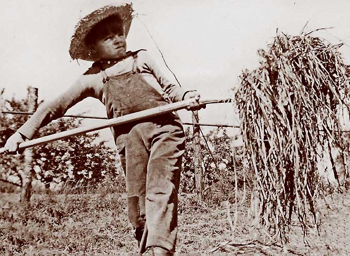 Pitching hay on family farm.